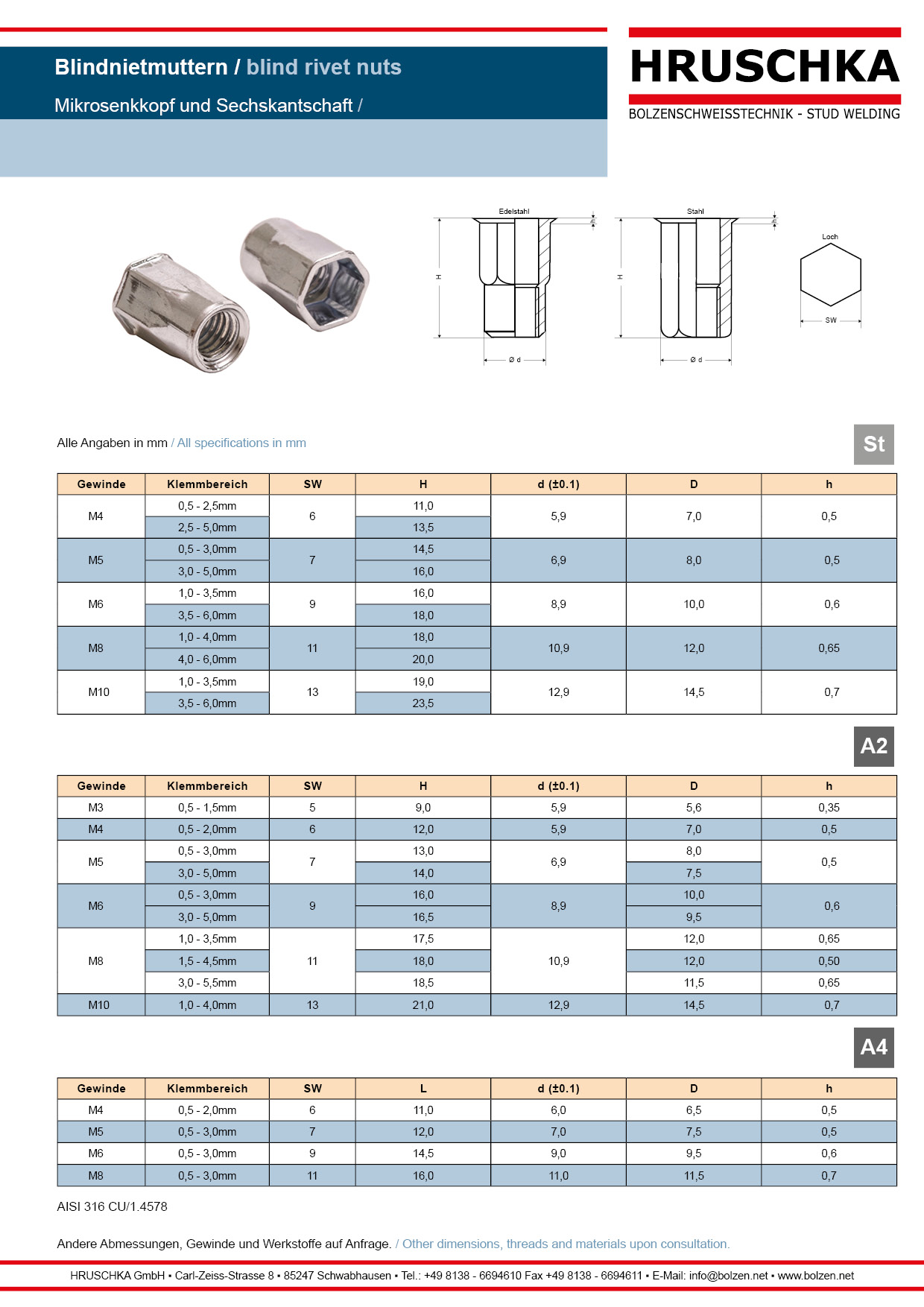 | Bezeichnung | Blindnietmutter aus Stahl verzinkt M 10x60 Kleiner Senkkopf mit Sechskantschaft KLB: 3,0 - 6,0 mm |