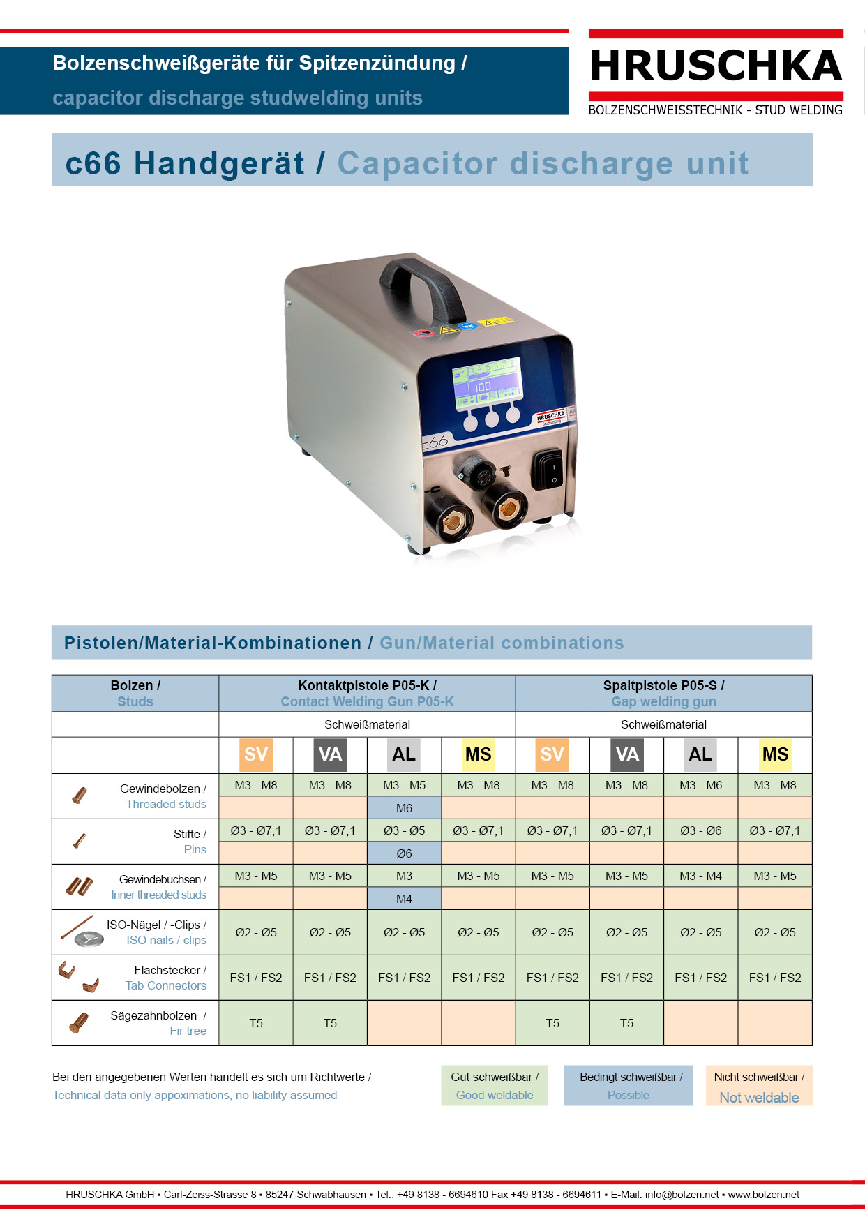| Bezeichnung | Bolzenschweißgerät C66 - Schweißbereich: M3-M8 |